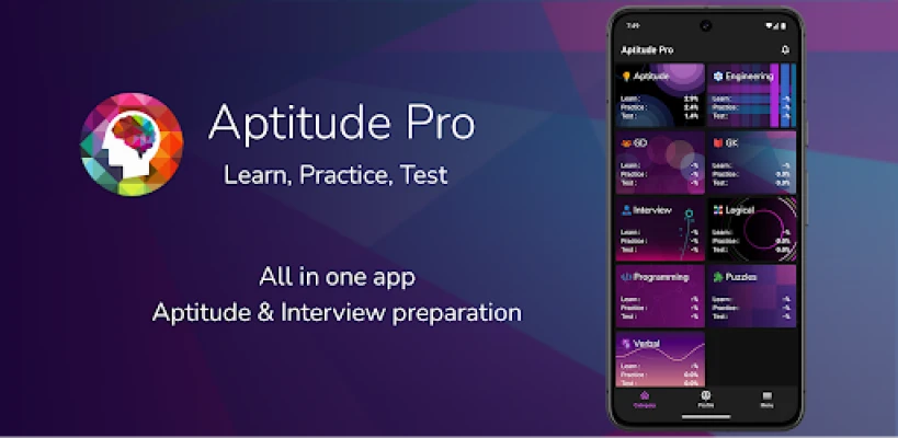 Aptitude Pro: The best all-in-one app to master multiple topics including: Aptitude Tests, Engineering, Interview Questions, Group Discussions, General Knowledge, Logical Reasoning, Programming, Puzzles (Critical Thinking) and Verbal Communication.