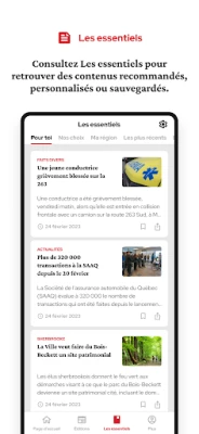Votre temps est compté ? Découvrez la section Les essentiels où vous aurez le choix entre la vue Pour vous, un fil de nouvelles taillé sur mesure en fonction de vos intérêts, Nos choix, un fil de nouvelles triées sur le volet par notre équipe de rédaction ou Ma région, où vous retrouverez toutes vos informations locales.