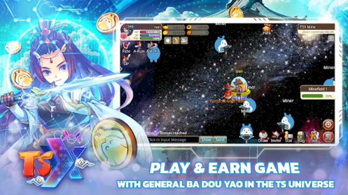 From the universe of TS Online Mobile, TSX evolves into a Multiverse adventure powered by Web3, GameFi, P2E, NFTs, Mining, and a full-featured Token Marketplace.
