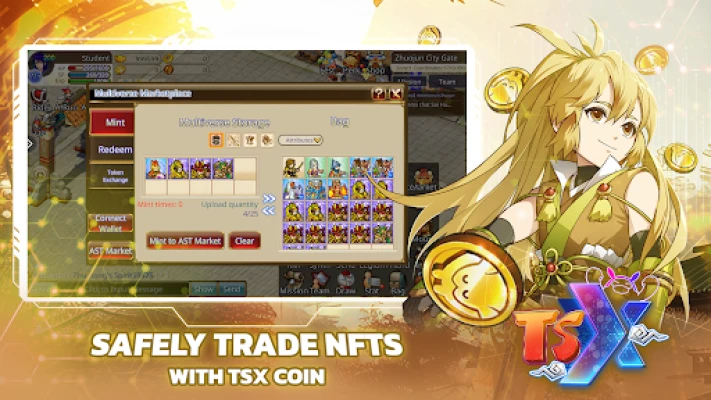 The Mining System allows you to collect TSX Coins through in-game mining. The more you mine, the greater the rewards. Convert TSX Coins into Tokens for trading valuable items on the NFT Marketplace—creating a new way for players to earn real-world value.