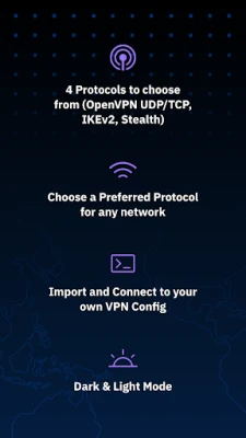 • Support for many protocols: WireGuard, OpenVPN, IKEv2, Stealth, WStunnel